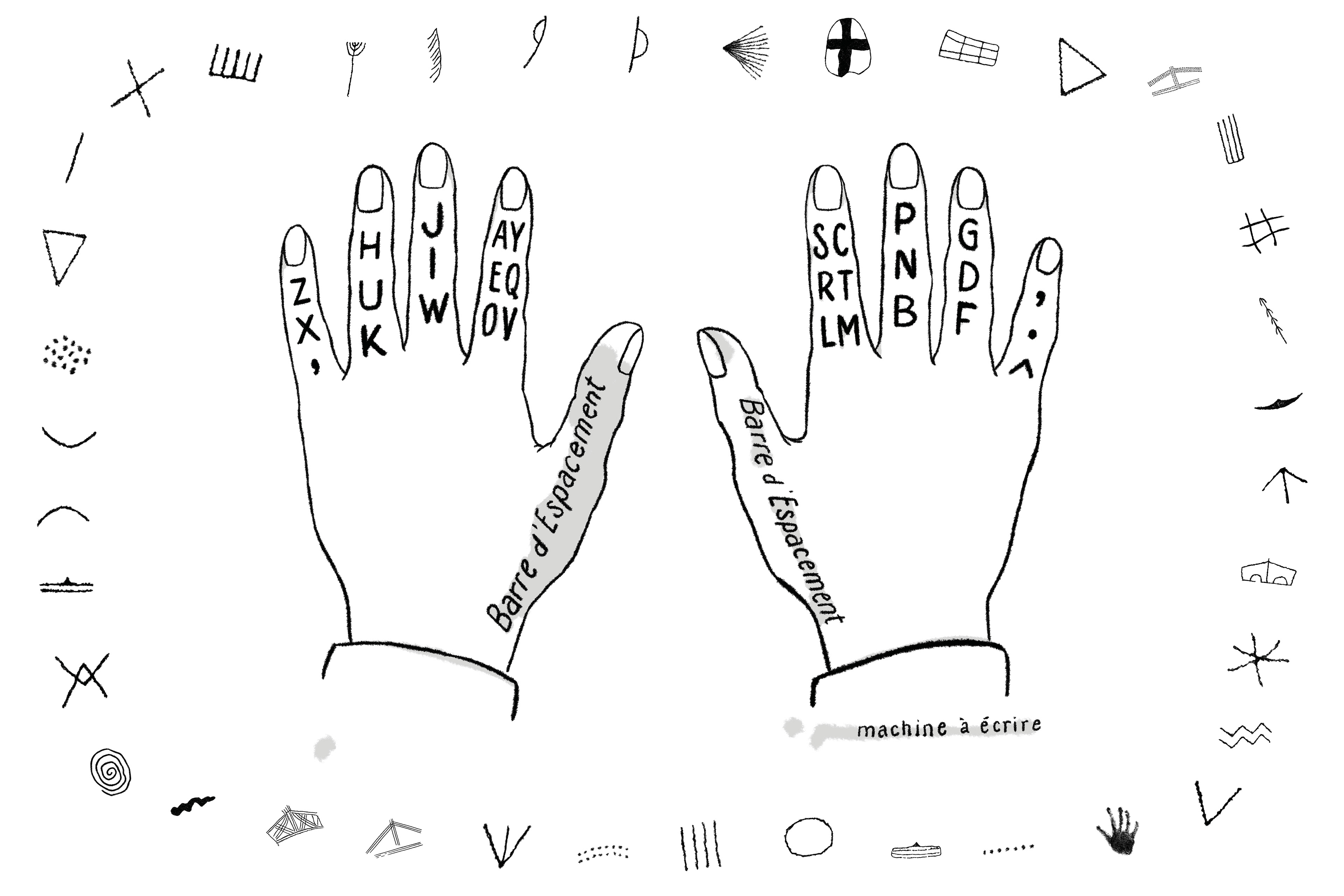Pour la réalisation de cette installation générative, une intelligence artificielle a été entraînée à inventer des mythes sur le futur de l’humanité, qu’elle oralise au moyen d’une voix de synthèse. Ces récits, qui offrent une impression de familiarité en raison de la place qu’occupent les mythes dans notre inconscient collectif, sont retranscrits simultanément en signes préhistoriques par une sténotype robotisée – un dispositif permettant d’archiver des histoires qui, par essence, relèvent de la tradition orale. L’archéosténographe fonctionne selon une méthode d’écriture rapide qui utilise la phonétique pour transcrire les sons de la parole en temps réel. Ici, les 36 phonèmes de la langue française ont été remplacés par autant de symboles datant du Paléolithique, suivant une grammaire développée par Julie Hétu dans son essai "L’écrivain préhistorique". Aboutissement de six ans de recherches doctorales sur l’origine du chant et de l’écriture, elle y étudie la récurrence des motifs abstraits dans l’art pariétal, qui abondent dans la plupart des ensembles préhistoriques et que plusieurs chercheurs considèrent comme une forme "d’écriture primitive". Inspiré par le modèle archétypal de la pierre de Rosette ayant permis de déchiffrer les hiéroglyphes, ce projet est né d’un désir plus poétique que scientifique d’arriver à lire ou écrire des récits en symboles préhistoriques.